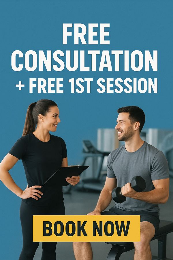 Kickstart your goals with a FREE consultation and FREE first personal training session. Experience customized coaching designed around your body, your pace, and your results — no commitment, just progress.